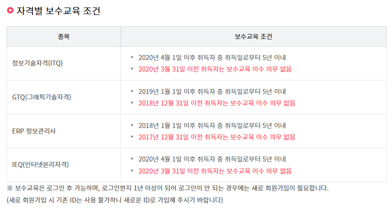 - 보수교육 대상: 2020년 4월 1일 이후 취득자