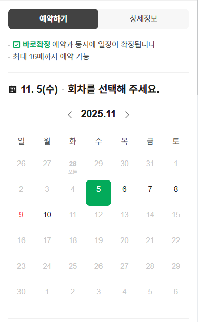 - 주말과 공휴일은 예약이 조기 마감되므로 사전 예약 필수