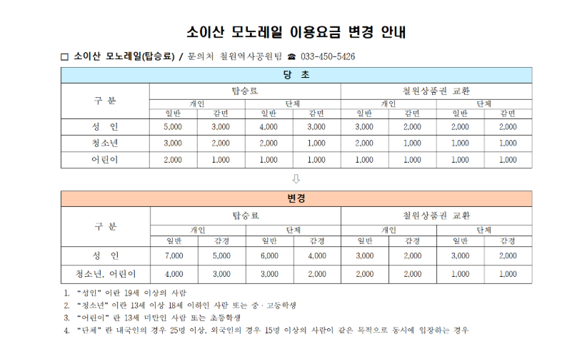 소이산 모노레일은 철원 여행에서 자연, 역사, 문화를 한 번에 즐길 수 있는 특별한 교통수단입니다. 사전에 예약을 확실히 하여 편안하고 안전한 관광을 즐기시기 바랍니다.