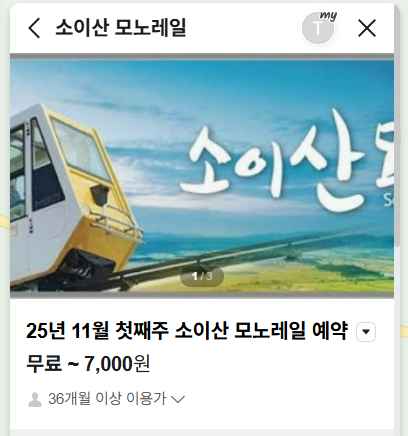 - 네이버 예약 페이지에서 ‘소이산 모노레일’ 검색 후 예약 가능