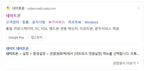 - 검색창에 네이트온을 입력하여 공식 앱을 찾아 다운로드합니다.
