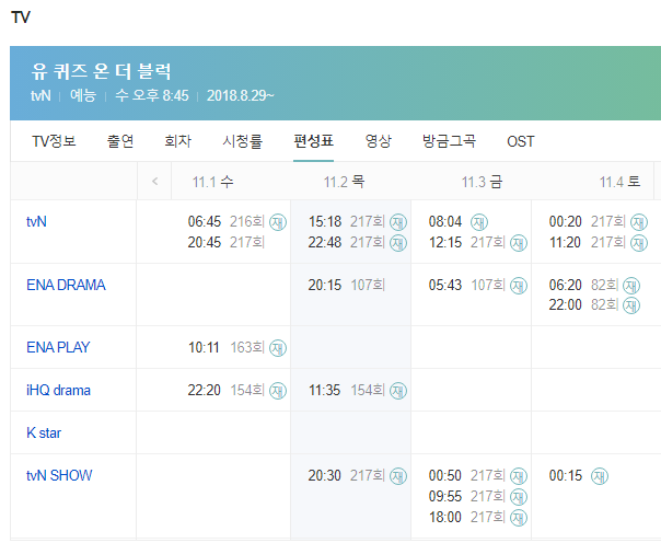 다른 날짜의 재방송 시간을 확인을 원하시면 아래에서 바로 확인할 수 있습니다.