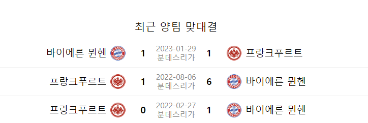 - 상대 : 프랑크푸르트 VS 뮌헨 (원정경기)