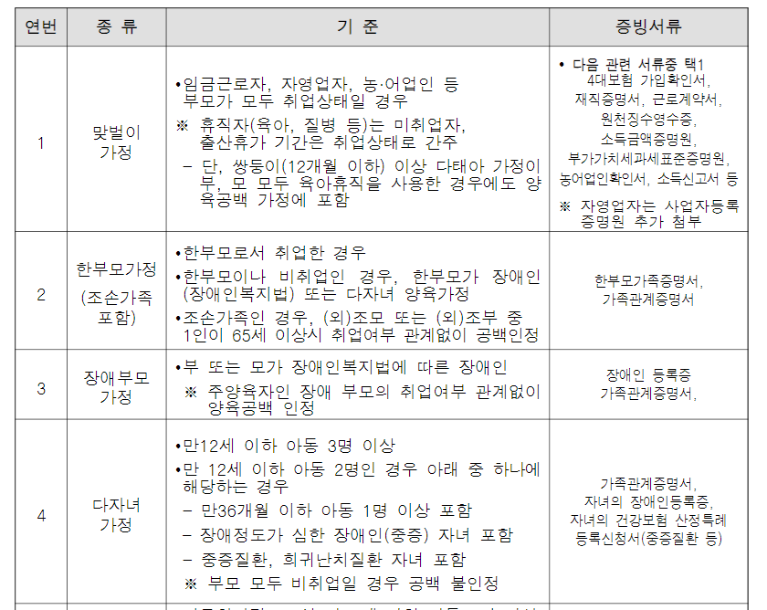 지원 대상 기준 중에서 양육 공백 가정의 조건이 있는데요.