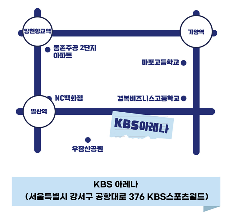 - 공연 장소: KBS 아레나 (서울특별시 강서구 공항대로 376 KBS스포츠 월드)