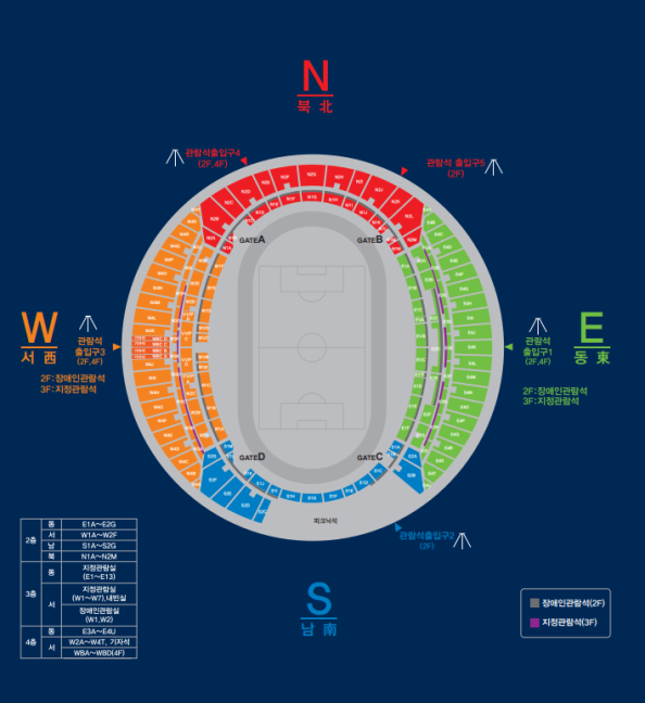 용인미르스타디움 경기장에 처음방문하시는 분들을 위해 좌석 배치도를 안내해드립니다.